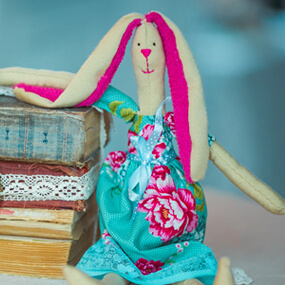 Интерьерная рукодельная кукла «Зайчик», созданию которой посвящена весенняя серия постов в блоге и несколько подкастов.